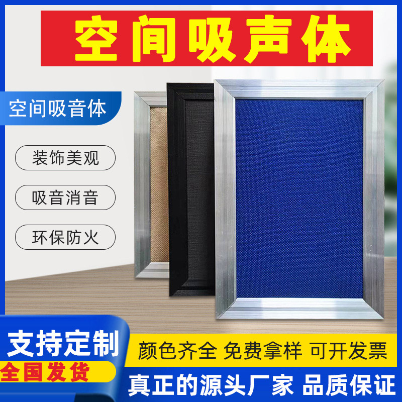 凱音牌空間吸聲體簡介:吸聲性能好,吸聲頻帶寬,有效控制和調室內混響。防火、防潮。安裝簡單,外型美觀,組裝靈活方便。外形規格多樣,吸音布面有多種顏色可供選擇。